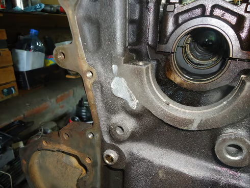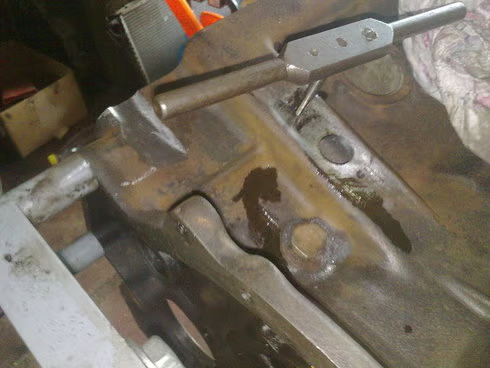 3. Drill an additional hole into the seat of the first main bearing. This is used for timing chain lubrication. Hole diameter is 4mm.