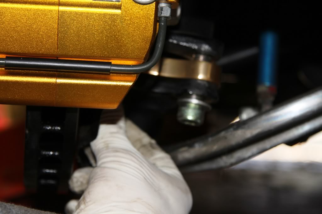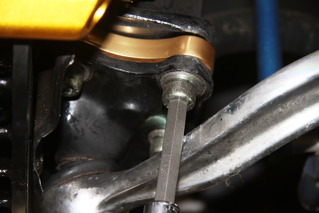 Once all 3 are started, snug the 3 bolts to pull the arm up to the strut with a 10mm hex key.