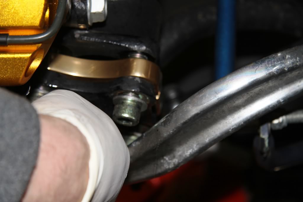 I used some thick 12mm stainless steel washers under the heads of the bolts to reduce the chance of the bolt head damaging the powder coating on my steering arms.