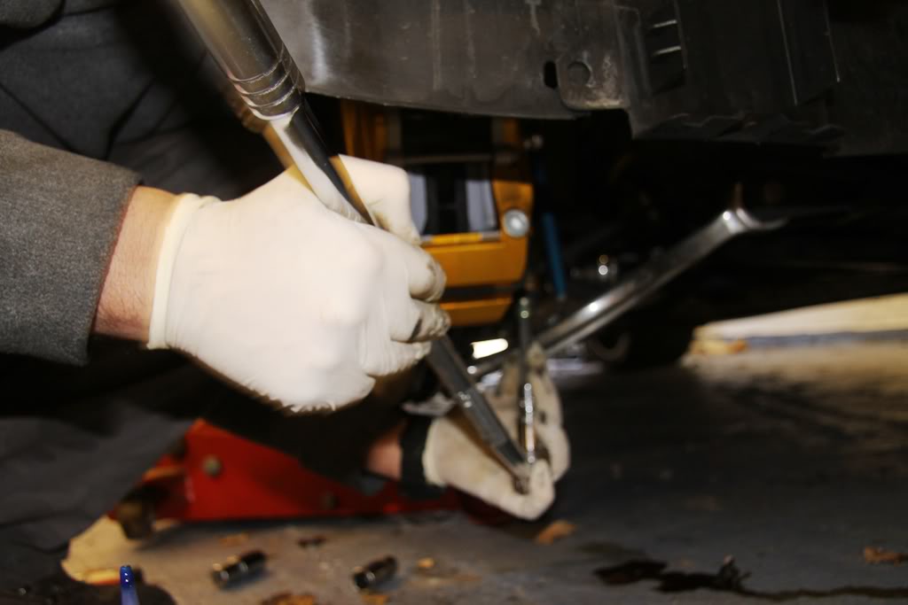 Next, remove the bolts one at a time and apply thread lock to each bolt and refit loosely.