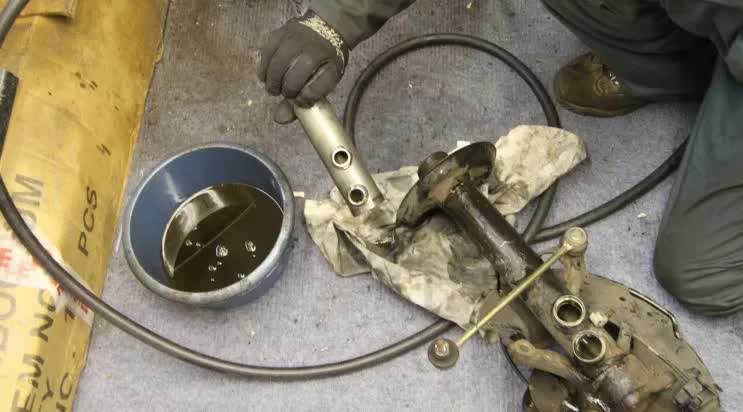 Securely hold the strut and using some large grips, or “Stilsons”, attempt to unscrew the lower EDC connector, close to the body of the strut, on the metal ring part of the plug.