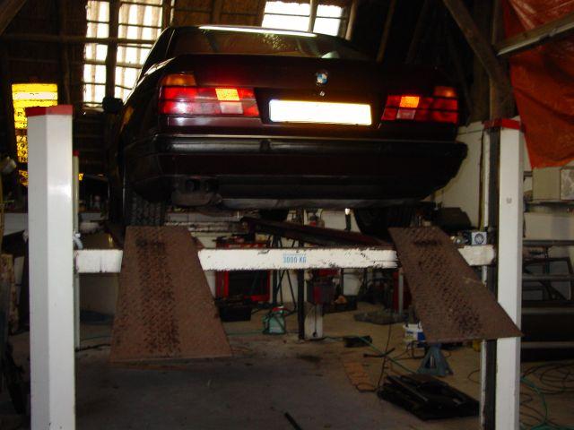 Since my cousin just got a new toy (also known as a lift) I was fortunate enough the raise the car with four wheels “on the ground”.