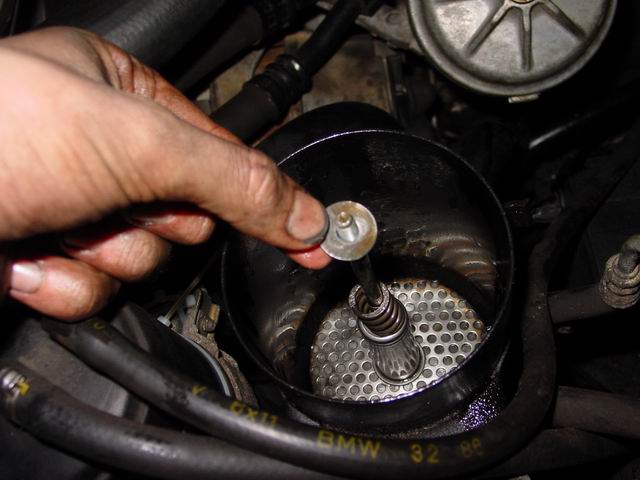 Now you can remove the oil-strainer that contains the filter cartridge.