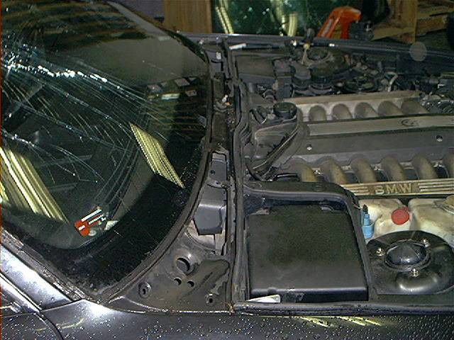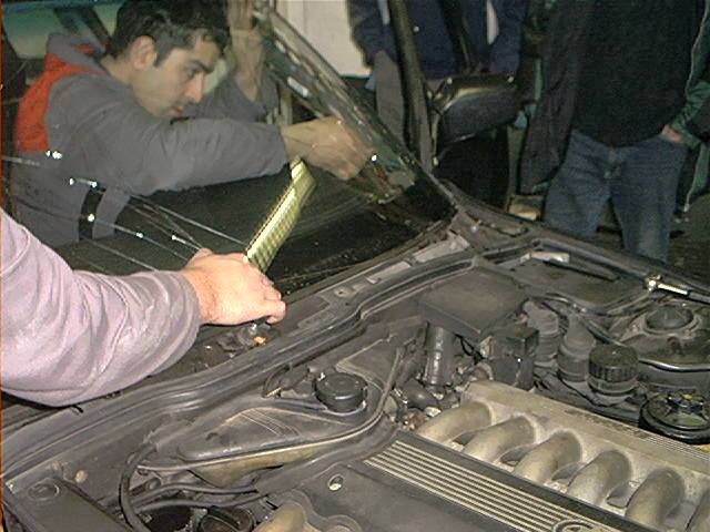 First, the ornamental strips where removed. Do this very carefully, as these strips costs a small fortune at the BMW dealer (really, this isn’t a joke. 2 strips are more expensive than a new windshield):