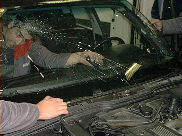 How could I remove the old windscreen from the car without breaking the window and let thousands of pieces of glass fall into the car and ventilation system?