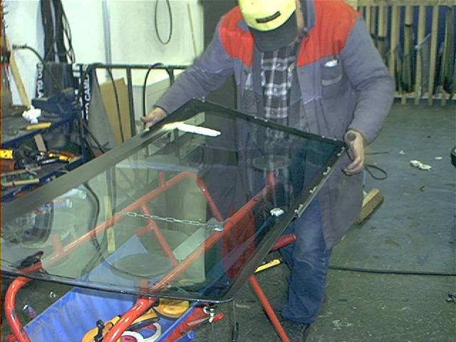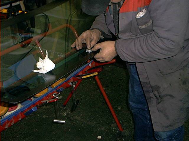 In the meantime, somebody else was applying a bead of sealant on the body opening.