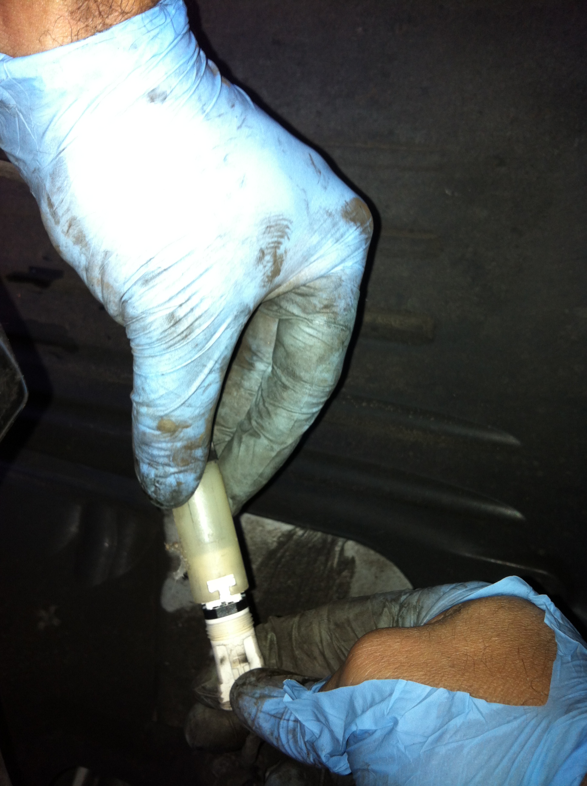 Pry the pad off the pistons and use the Channel lock pliers to remove the sensor from the pad.